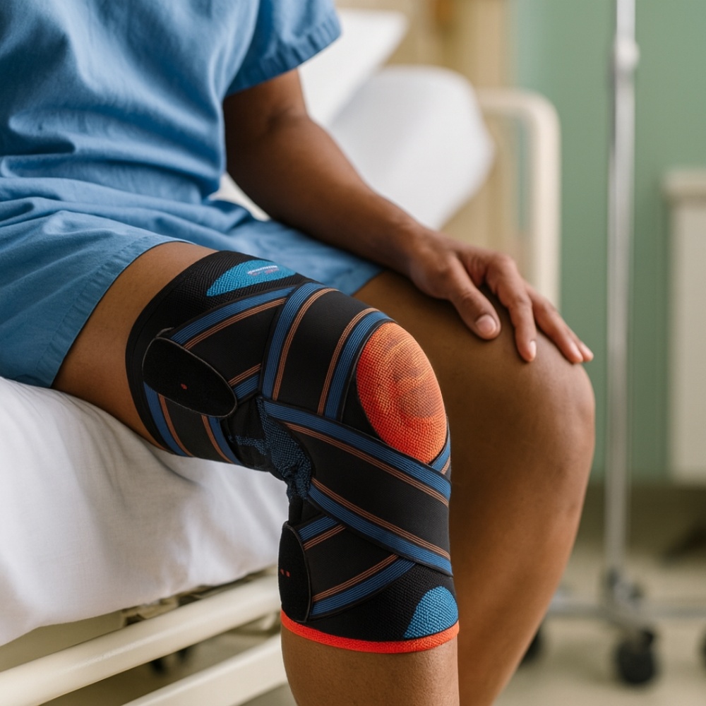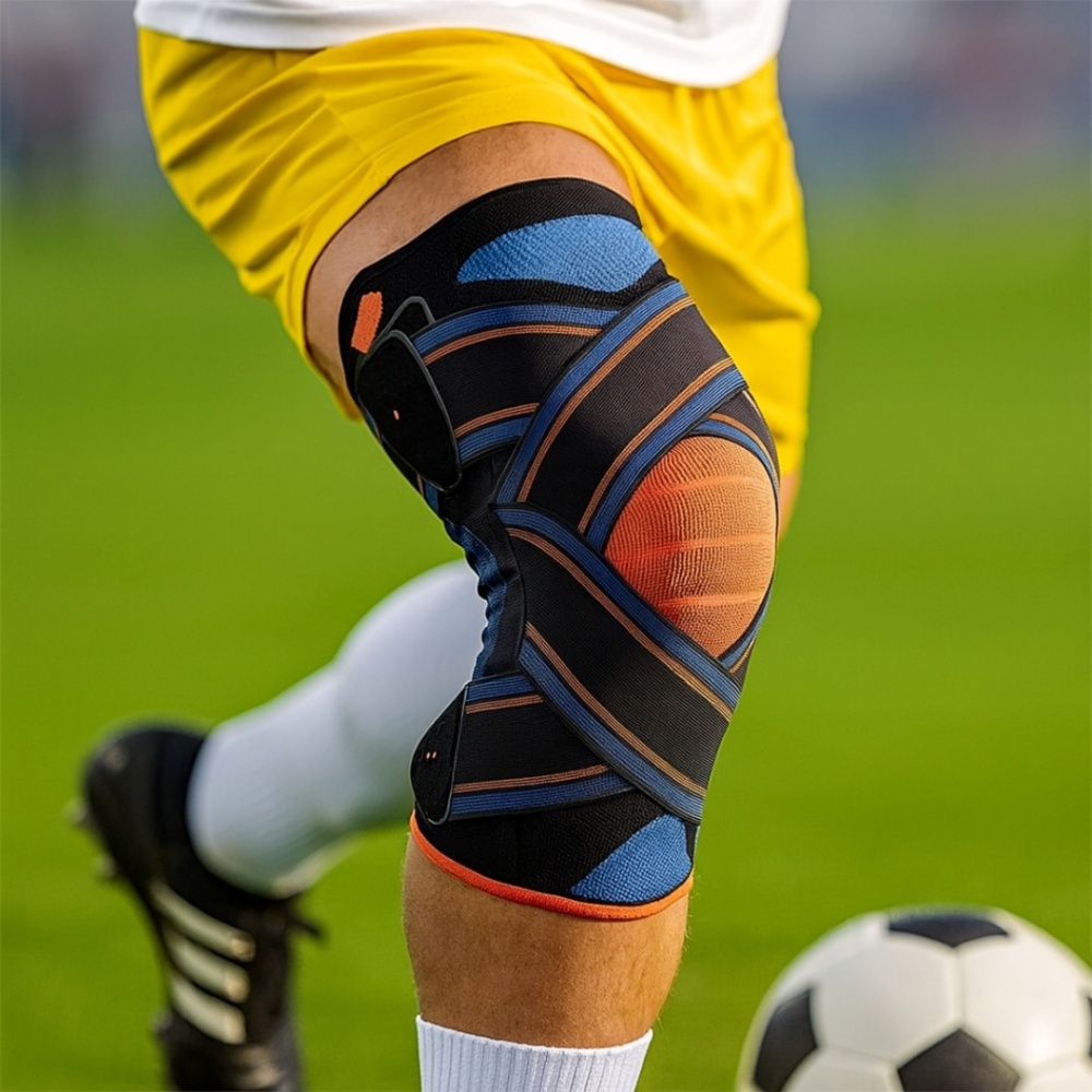 Два гнучкі металеві бічні ребра в ортопедичному наколіннику служать для посилення бічної підтримки та стабілізації колінного суглоба, мінімізуючи ризик бічного зміщення колінної чашки і запобігаючи небажаним рухам, які можуть посилити травму або захворювання.